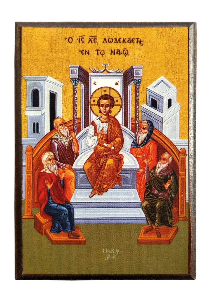 Fragment Ewangelii według św. Łukasza (Łk 2, 41–52) jest jedynym opisem młodzieńczych lat Jezusa, jaki przekazała nam Tradycja ewangeliczna. Kościół prawosławny odczytuje tę perykopę jako głęboką ikonę tajemnicy Wcielenia: Syna Bożego, który prawdziwie staje się Człowiekiem, nie przestając być Bogiem. Chrystus w świątyni – objawienie Boskiego Synostwa.