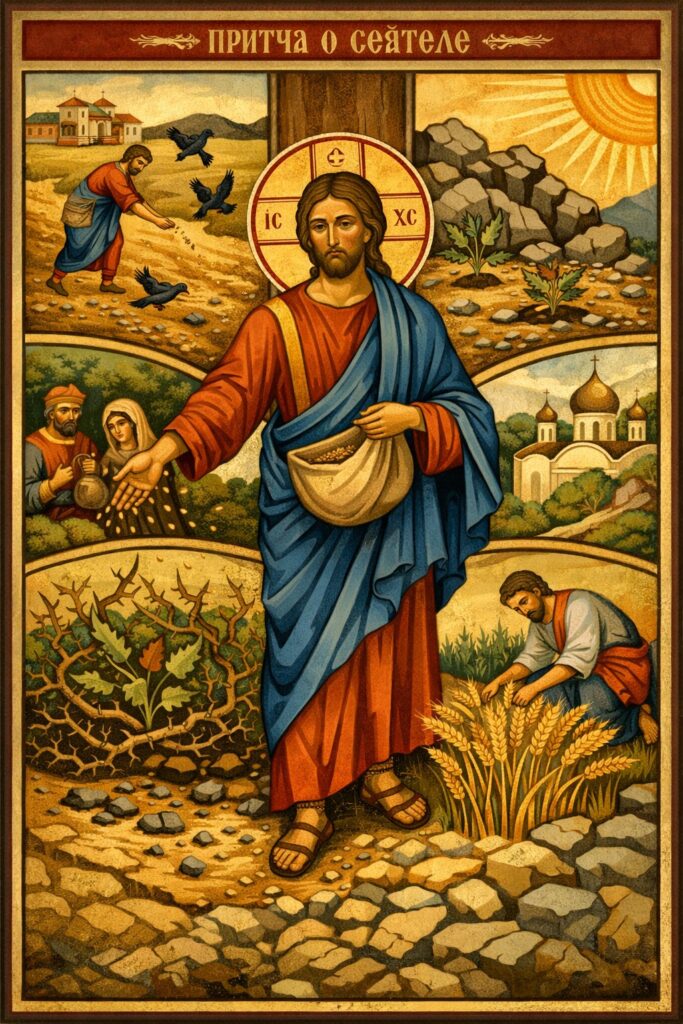 Św. Jan Chryzostom podkreślał, że Chrystus ukazuje tu „niewysłowioną dobroć Boga”, który daje swoje słowo nawet tam, gdzie może zostać odrzucone. Bóg nie jest skąpy w łasce. Z kolei bp Kallistos Ware pisał, że Boża miłość jest zawsze pierwsza — zawsze inicjująca. To nie my zaczynamy życie duchowe. To On pierwszy rzuca ziarno w nasze serce.