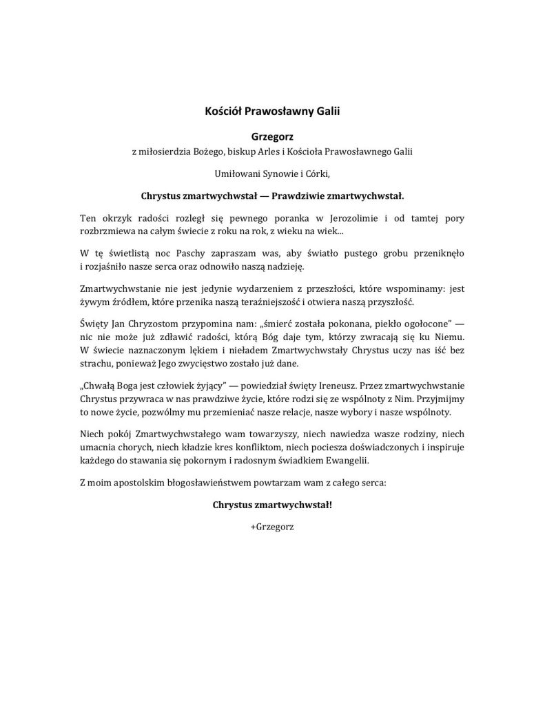 Biskup Grzegorz – Orędzie na Wielkanoc 2026